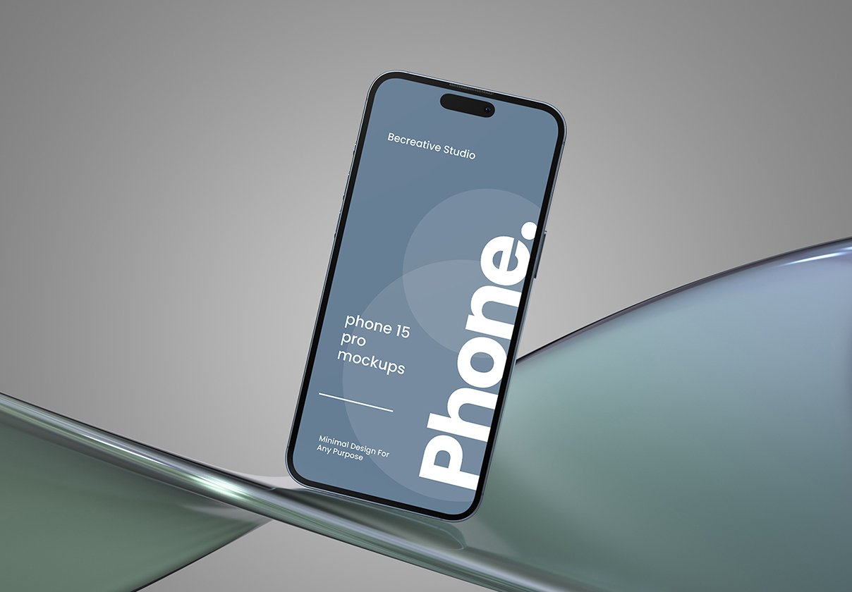 Editable PSD Mockups of iPhone 15 Screen on Glass Surface