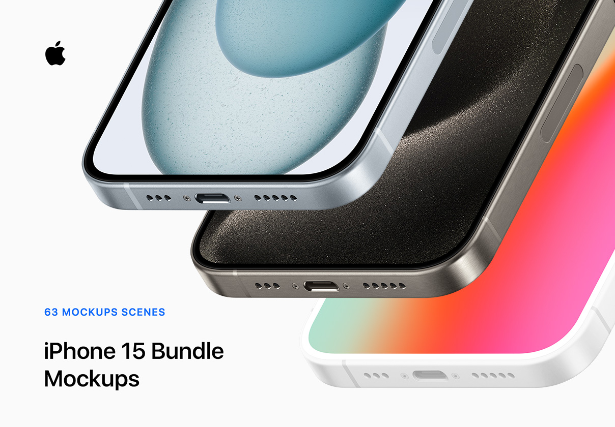 iPhone 15 Bundle – 63 Mockups Scenes