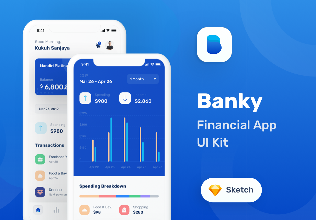 27 screen designs and 50+ symbols that will help you create a prototype for the banking application