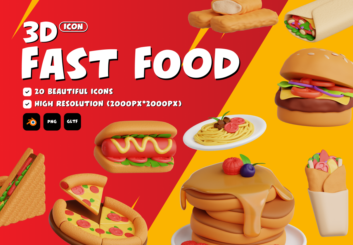 Download Fast Food 3D Icon Set