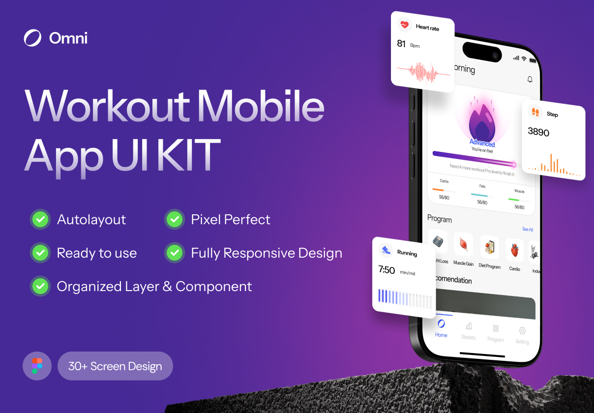 Omni is a modern UI kit with 30+ screens for healthy lifestyle apps
