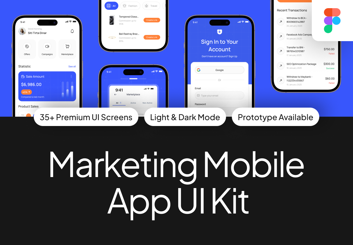 Premium Marketing Mobile App UI Kit with Modern and Minimalist Style