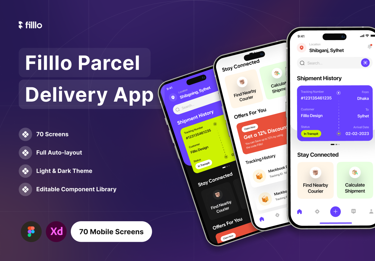 Filllo Parcel Delivery App UI Kit