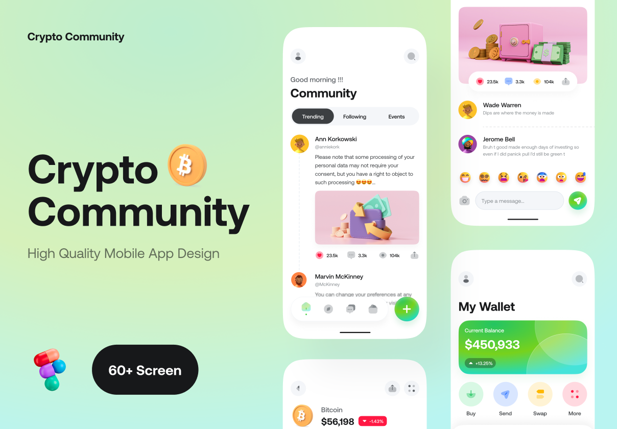 The Crypto Community App UI Kit | 60+ Screens | Available for Figma