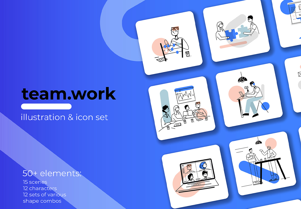 Illustration Pack – Icons, Characters and Scenes (team.work)