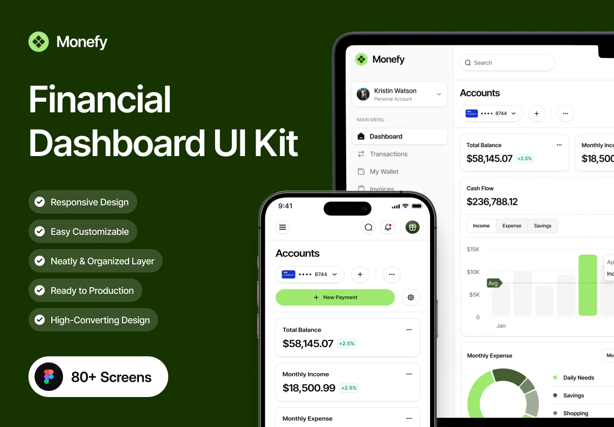 Premium Financial Dashboard UI Kit with 80+ High-Quality Designs