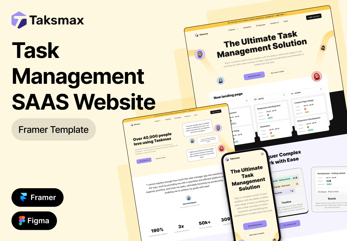 Taskmax – Task Management SAAS Website Framer + Figma Template
