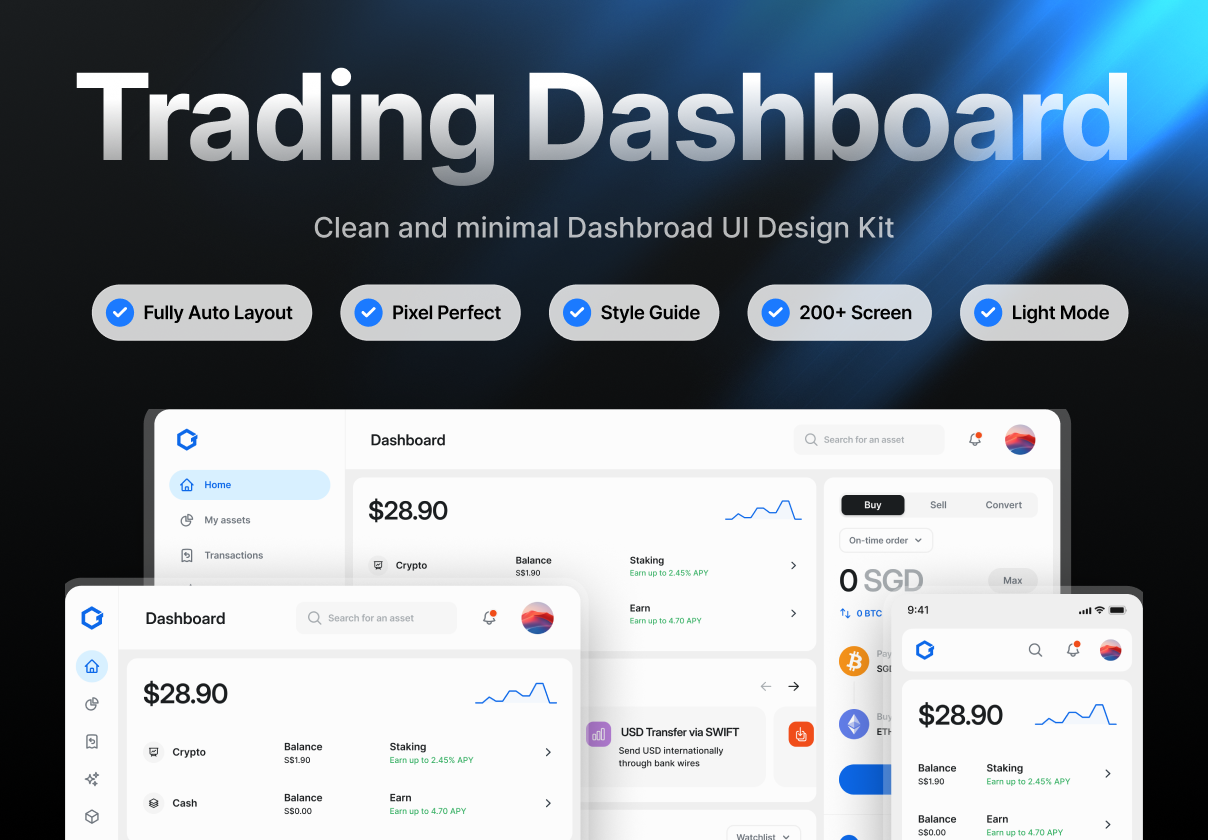 Clean and Minimal Crypto Trading Dashboard UI Design Kit